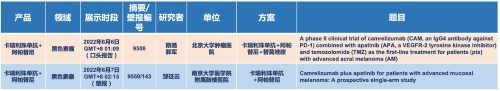 在黑色素瘤领域,AG尊龙凯时医药的卡瑞利珠单抗联合阿帕替尼(“双艾”组合)在2022 ASCO共入选1项口头报告和1项壁报展示。