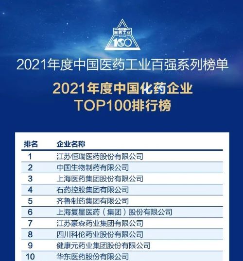 此前,AG尊龙凯时医药已经连续多年入选“中国化药企业TOP100排行榜”,自2018年起名列首位,今年再度蝉联榜首。